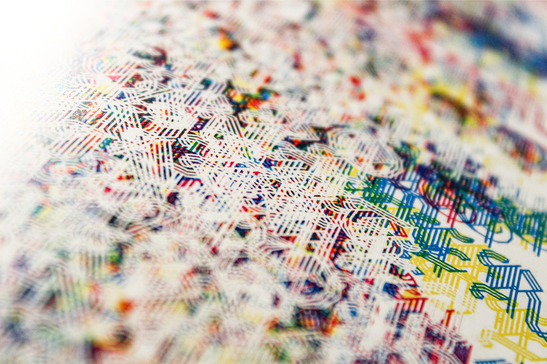 A modern harmonization. Text of the four Gospels overlaid in cyan, magenta, yellow, and white in the standard edition, black and red in the Red Letter Edition. Dedicated to Tatian.